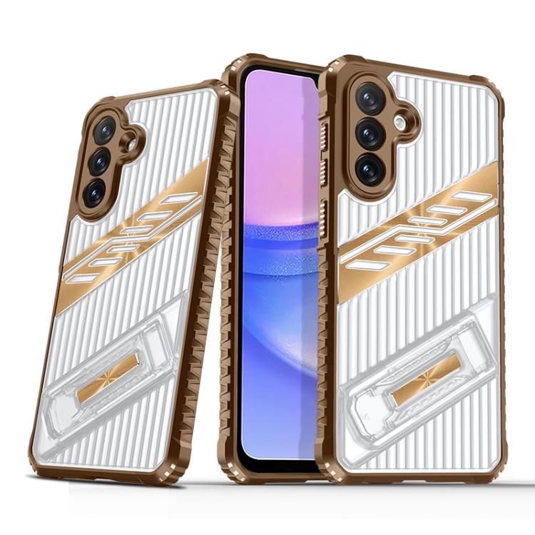 For Samsung Galaxy A15 Plating Holder PC Hybrid TPU Phone Case(Desert Gold)