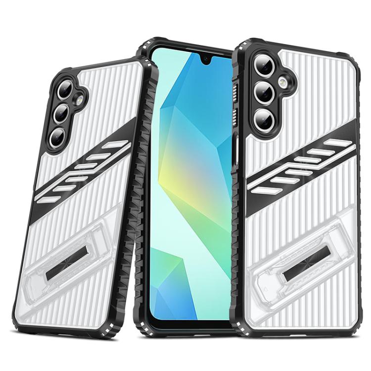 For Samsung Galaxy A16 Plating Holder PC Hybrid TPU Phone Case(Transparent Black)