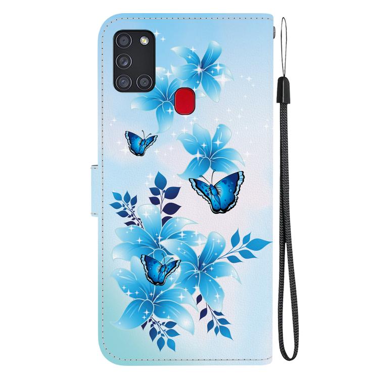 For Samsung Galaxy A21s Crystal Texture Colored Drawing Leather Phone Case(Blue Butterflies)