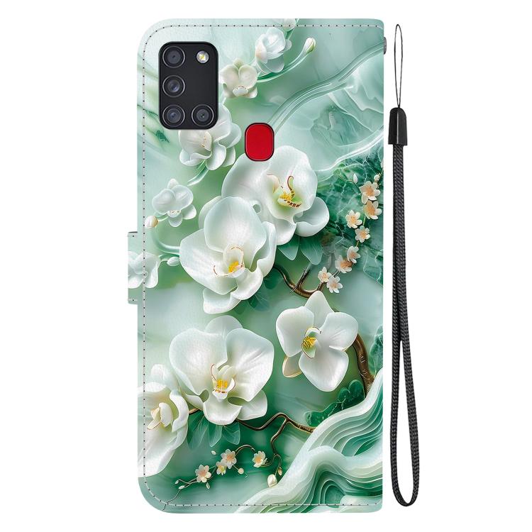 For Samsung Galaxy A21s Crystal Texture Colored Drawing Leather Phone Case(Jade Flowers)