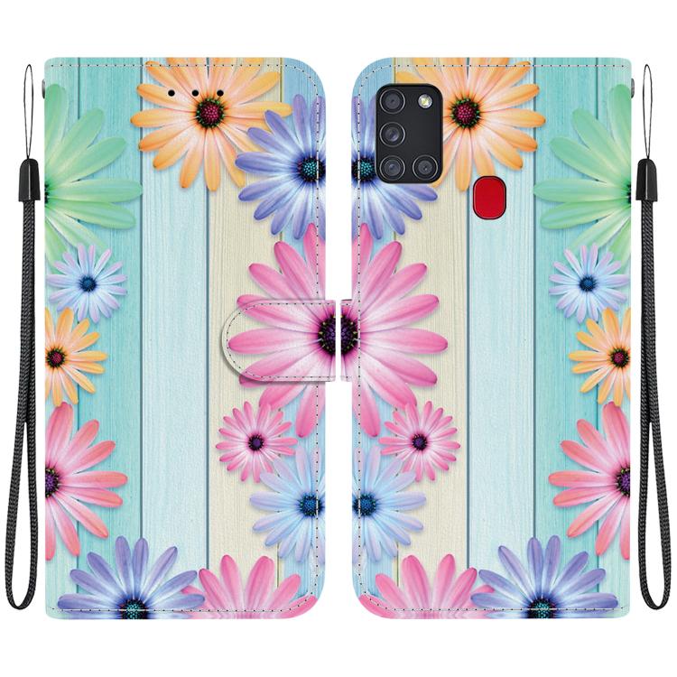 For Samsung Galaxy A21s Crystal Texture Colored Drawing Leather Phone Case(Sunflowers)