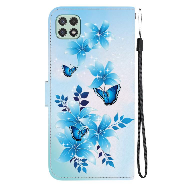 For Samsung Galaxy A22 5G Crystal Texture Colored Drawing Leather Phone Case(Blue Butterflies)