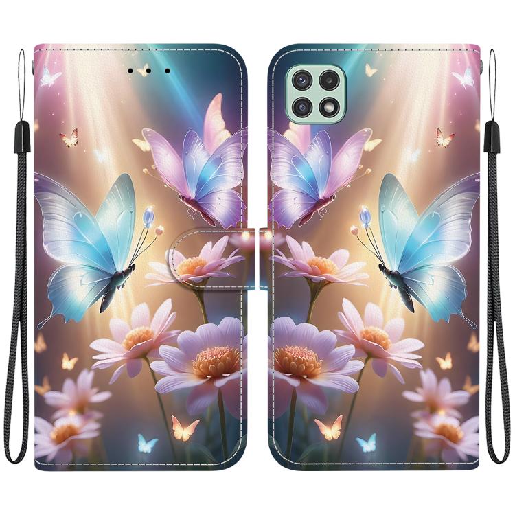 For Samsung Galaxy A22 5G Crystal Texture Colored Drawing Leather Phone Case(Butterfly Love Flower)