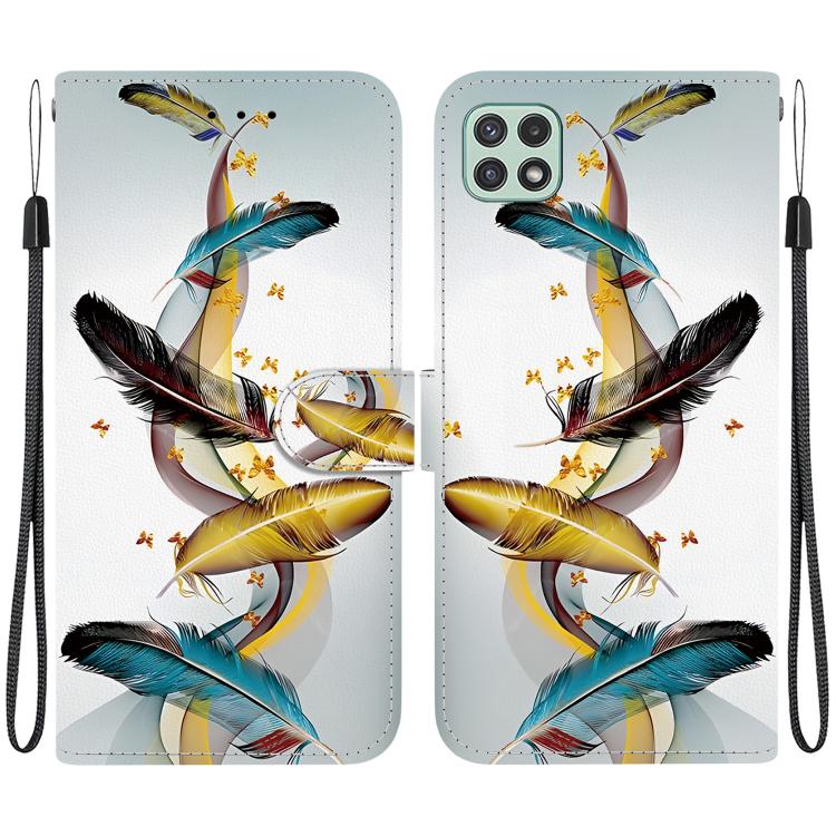 For Samsung Galaxy A22 5G Crystal Texture Colored Drawing Leather Phone Case(Gold Butterfly Feathers)