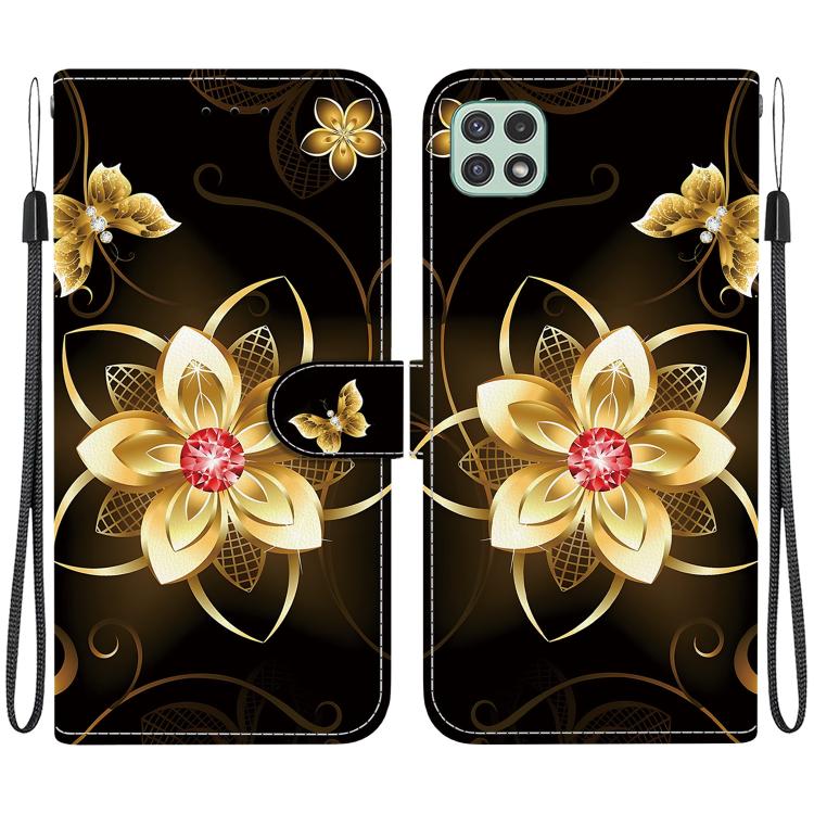For Samsung Galaxy A22 5G Crystal Texture Colored Drawing Leather Phone Case(Gold Flower)