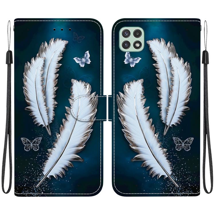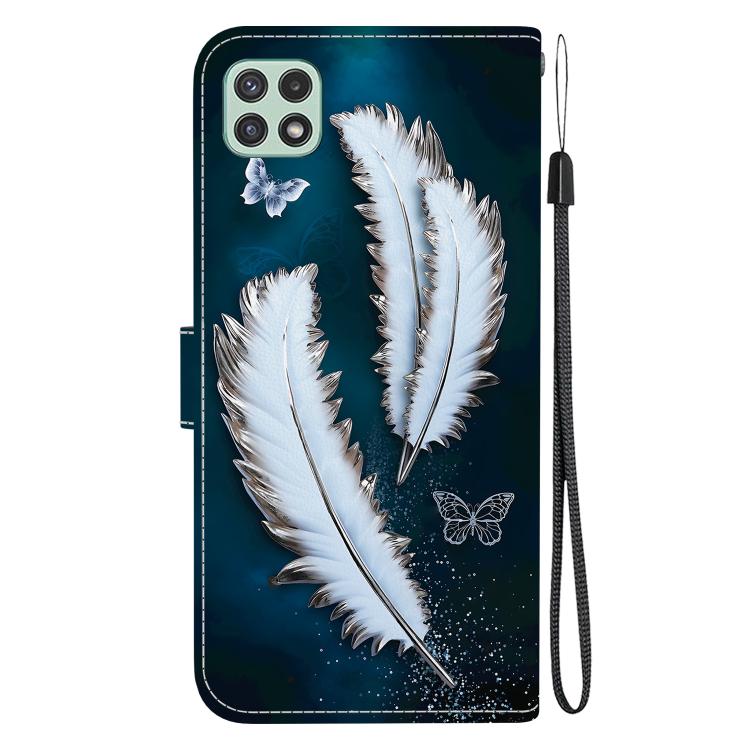 For Samsung Galaxy A22 5G Crystal Texture Colored Drawing Leather Phone Case(White Butterfly Feathers)