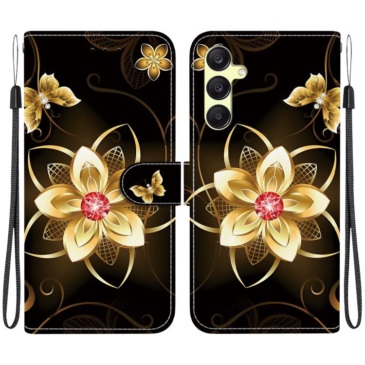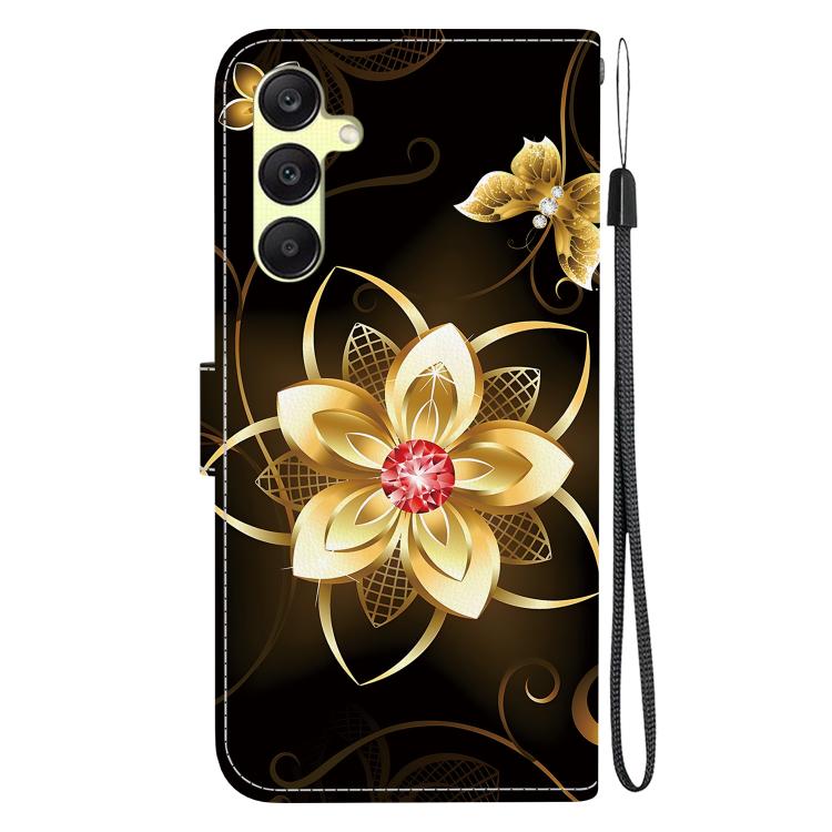 For Samsung Galaxy A25 5G Crystal Texture Colored Drawing Leather Phone Case(Gold Flower)