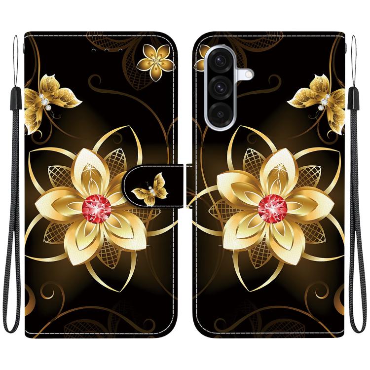 For Samsung Galaxy A26 5G Crystal Texture Colored Drawing Leather Phone Case(Gold Flower)