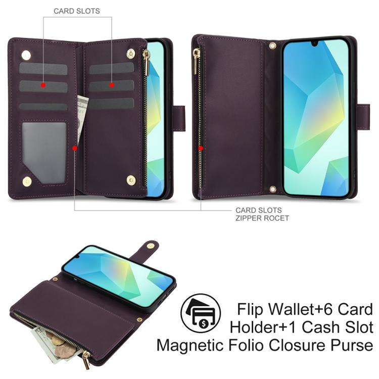 For Samsung Galaxy A26 5G YM016 Rhombic Zipper Card Wallet Leather Phone Case with Lanyard(Dark Purple)