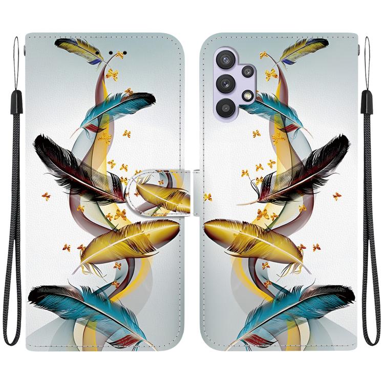 For Samsung Galaxy A32 5G Crystal Texture Colored Drawing Leather Phone Case(Gold Butterfly Feathers)