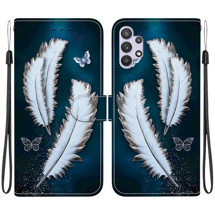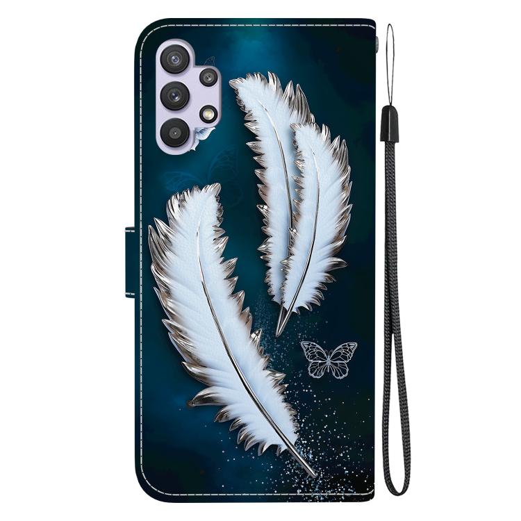 For Samsung Galaxy A32 5G Crystal Texture Colored Drawing Leather Phone Case(White Butterfly Feathers)