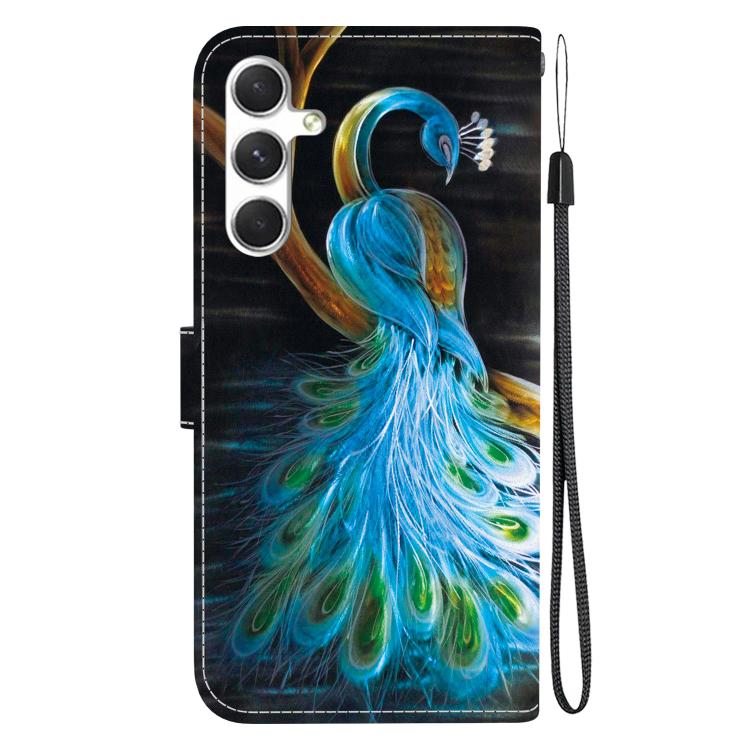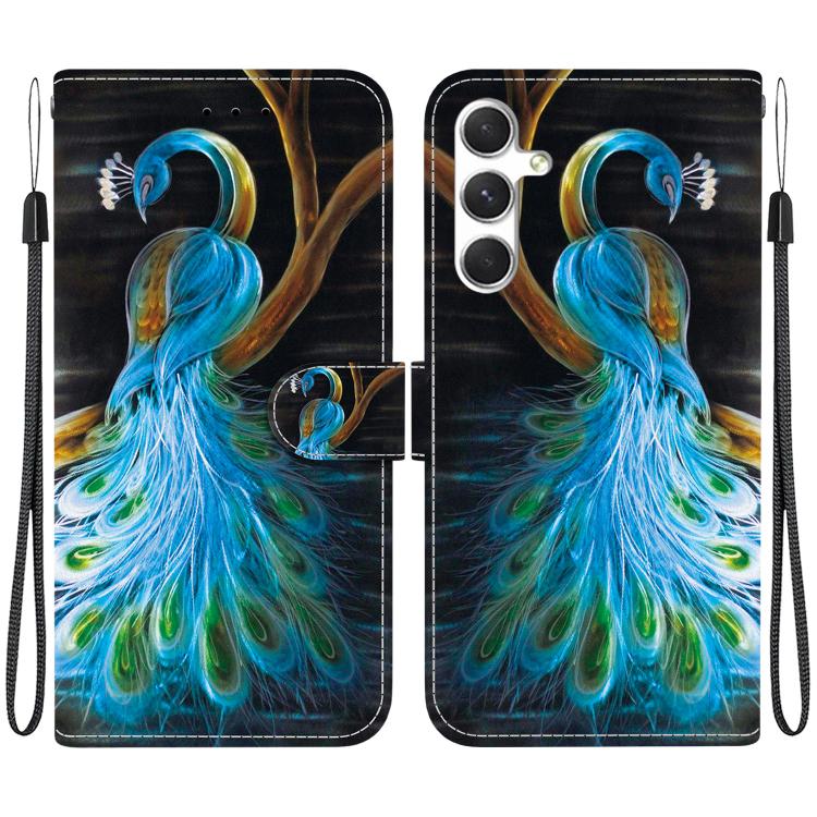 For Samsung Galaxy A35 5G Crystal Texture Colored Drawing Leather Phone Case(Peacock)