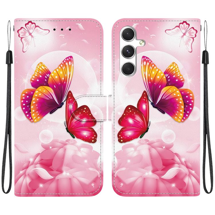 For Samsung Galaxy A35 5G Crystal Texture Colored Drawing Leather Phone Case(Pink Butterflies)