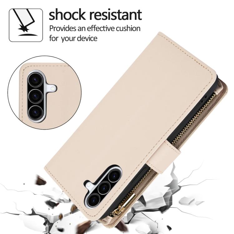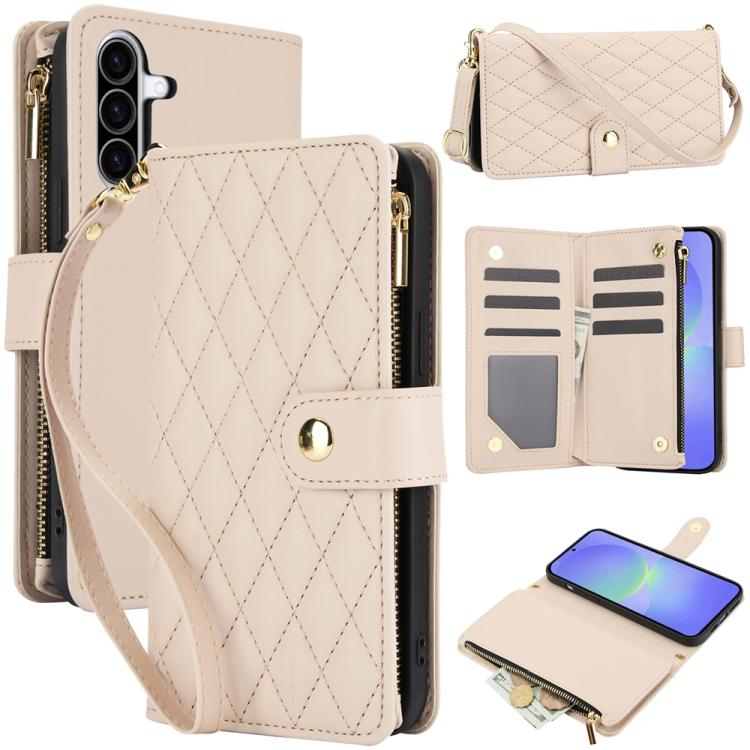 For Samsung Galaxy A36 5G YM016 Rhombic Zipper Card Wallet Leather Phone Case with Lanyard(Apricot)