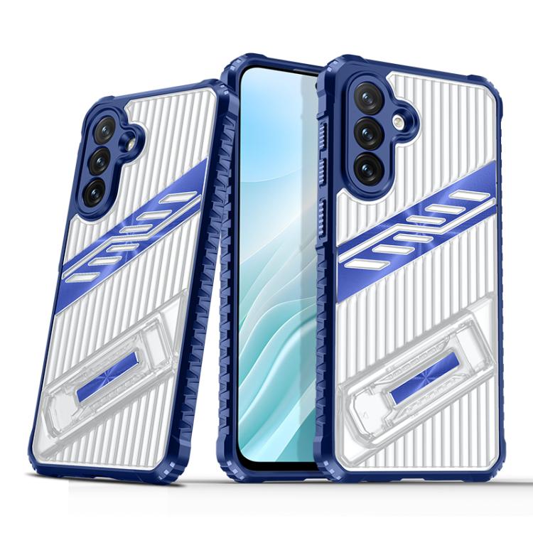 For Samsung Galaxy A36 / A56 5G Plating Holder PC Hybrid TPU Phone Case(Navy Blue)
