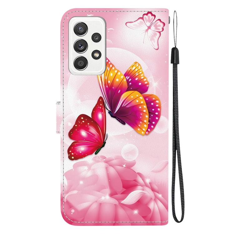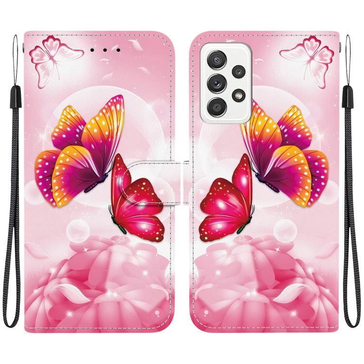 For Samsung Galaxy A52 4G / 5G Crystal Texture Colored Drawing Leather Phone Case(Pink Butterflies)