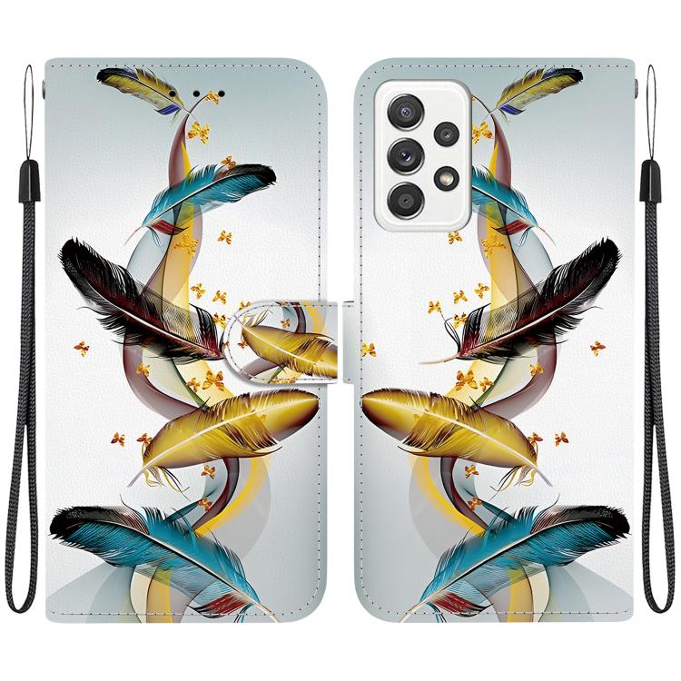 For Samsung Galaxy A53 5G Crystal Texture Colored Drawing Leather Phone Case(Gold Butterfly Feathers)