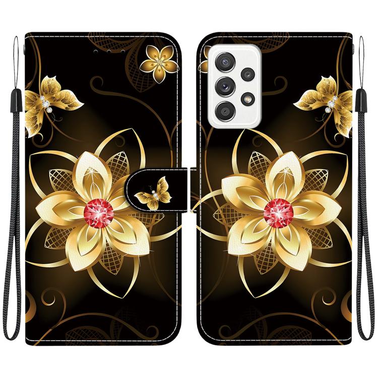 For Samsung Galaxy A53 5G Crystal Texture Colored Drawing Leather Phone Case(Gold Flower)