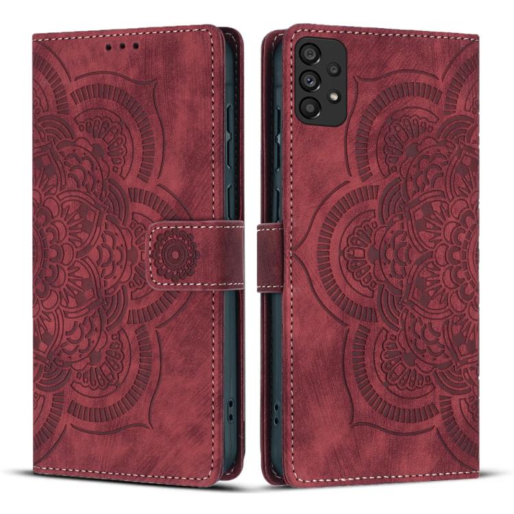 For Samsung Galaxy A53 5G Mandala Embossed Retro Frosted Leather Phone Case(Red)