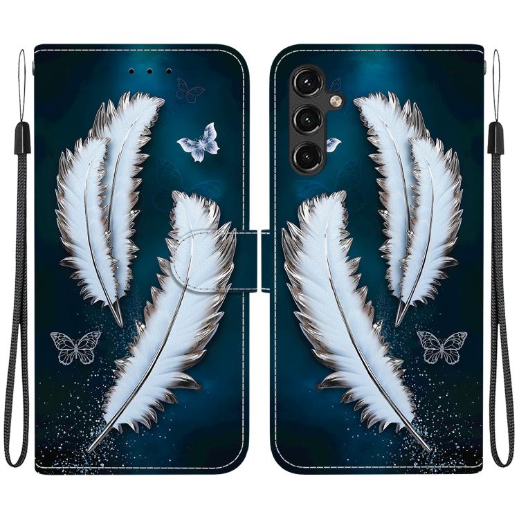 For Samsung Galaxy A54 5G Crystal Texture Colored Drawing Leather Phone Case(White Butterfly Feathers)