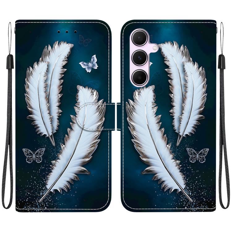 For Samsung Galaxy A55 5G Crystal Texture Colored Drawing Leather Phone Case(White Butterfly Feathers)