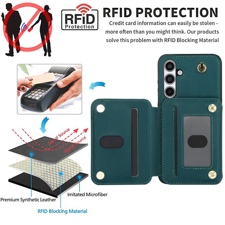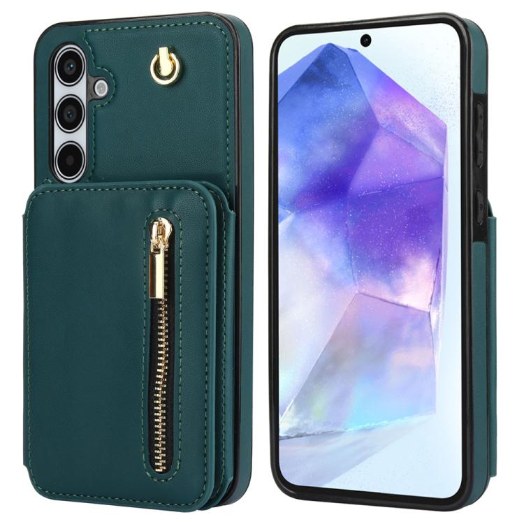 For Samsung Galaxy A55 5G YM006 Skin Feel Zipper Card Bag Phone Case with Dual Lanyard(Green)