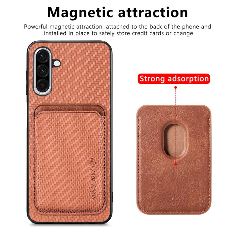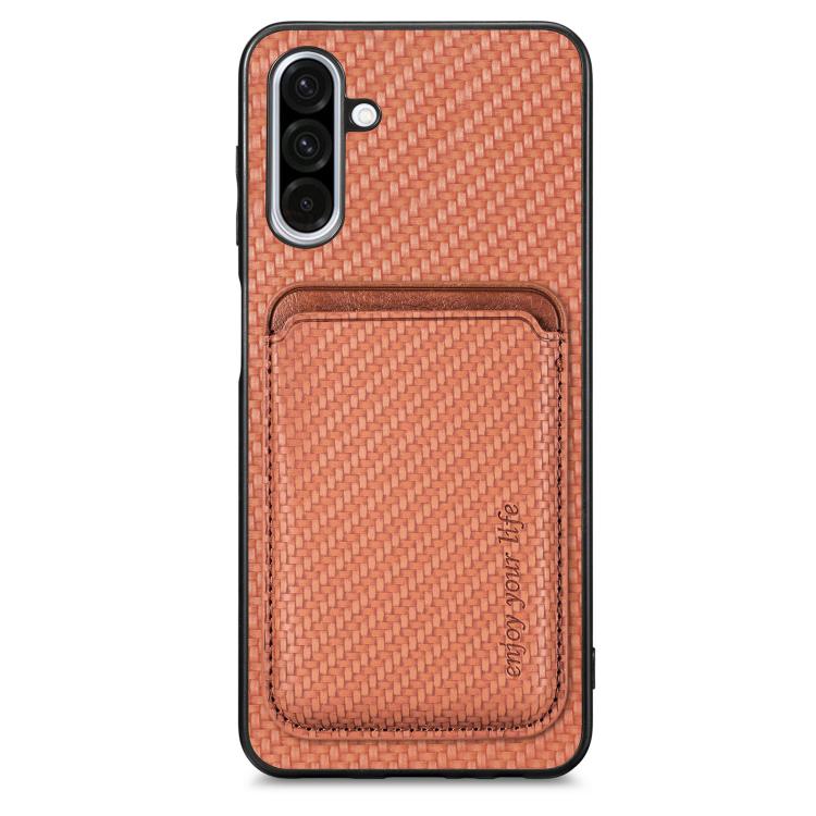 For Samsung Galaxy A56 5G Carbon Fiber Leather Card Magsafe Phone Case(Brown)