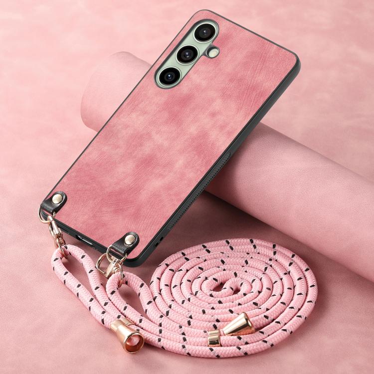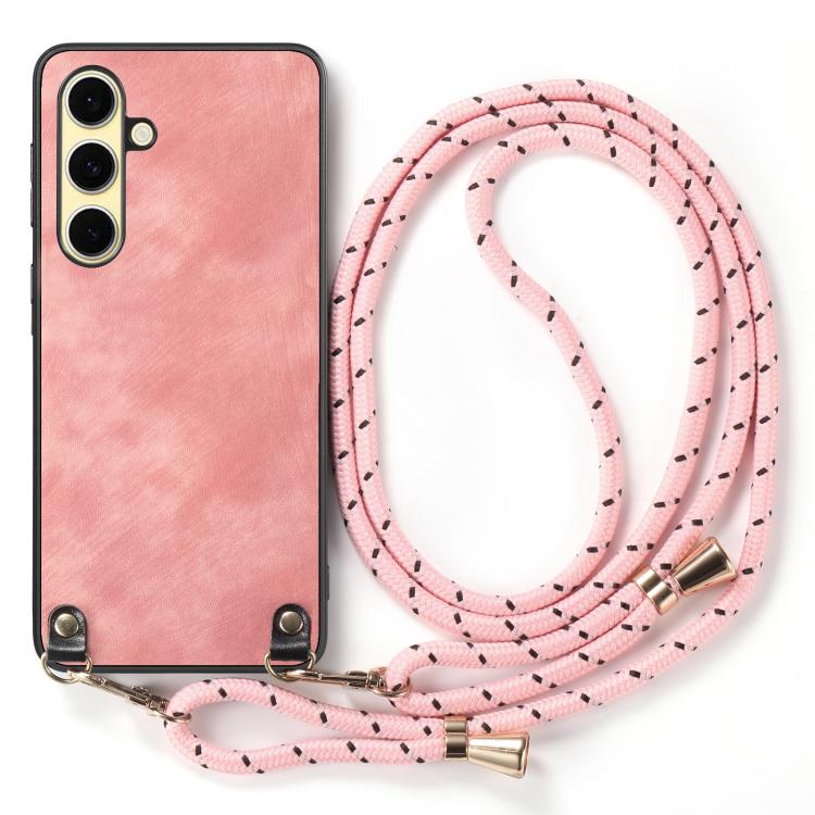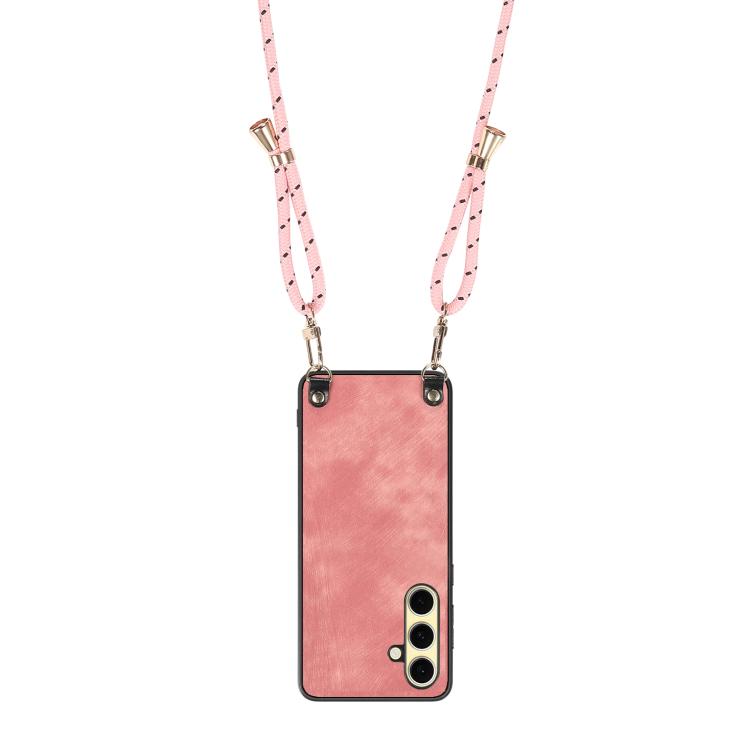For Samsung Galaxy A56 5G Vintage Leather PC Back Cover Phone Case with Crossbody Strap(Pink)