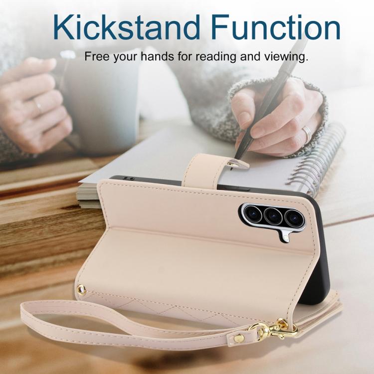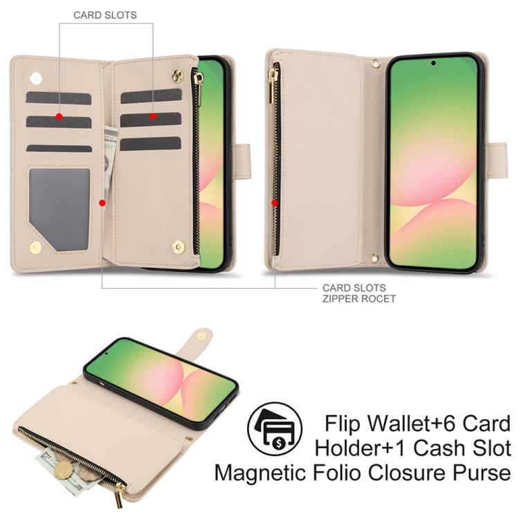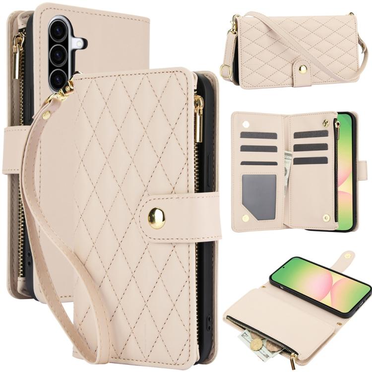 For Samsung Galaxy A56 5G YM016 Rhombic Zipper Card Wallet Leather Phone Case with Lanyard(Apricot)