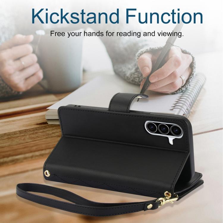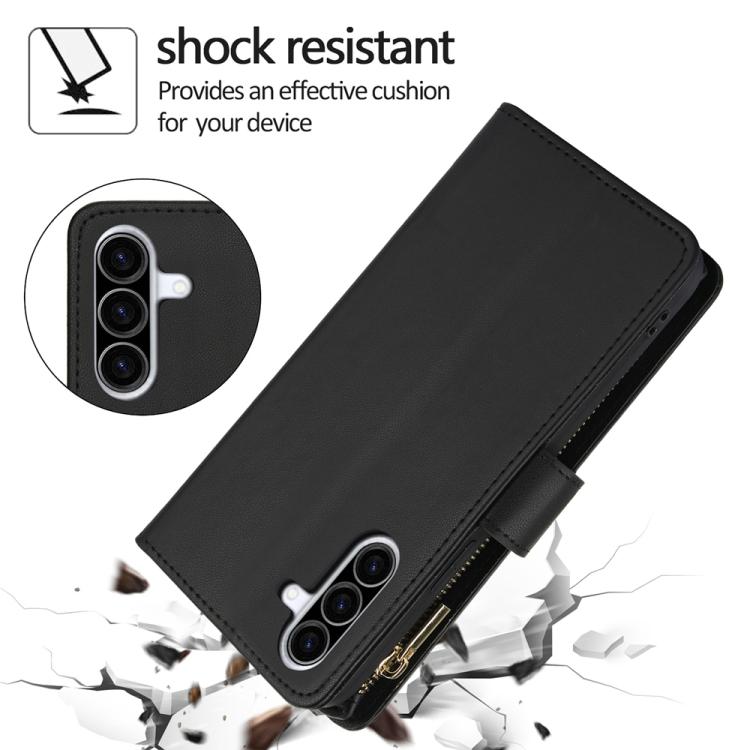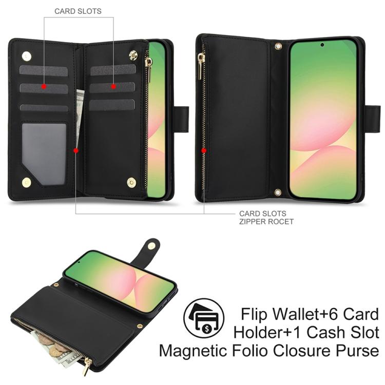 For Samsung Galaxy A56 5G YM016 Rhombic Zipper Card Wallet Leather Phone Case with Lanyard(Black)