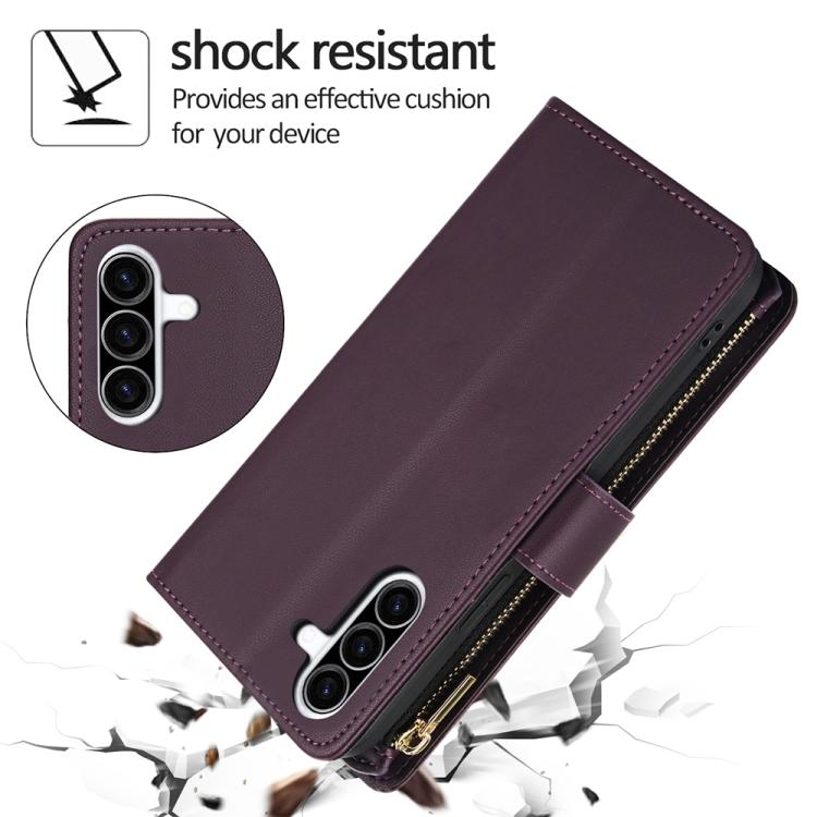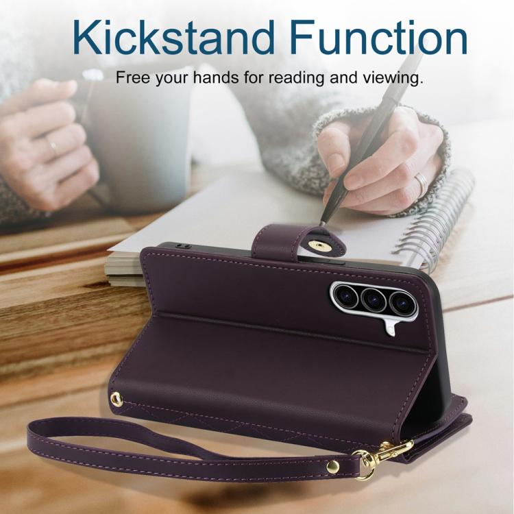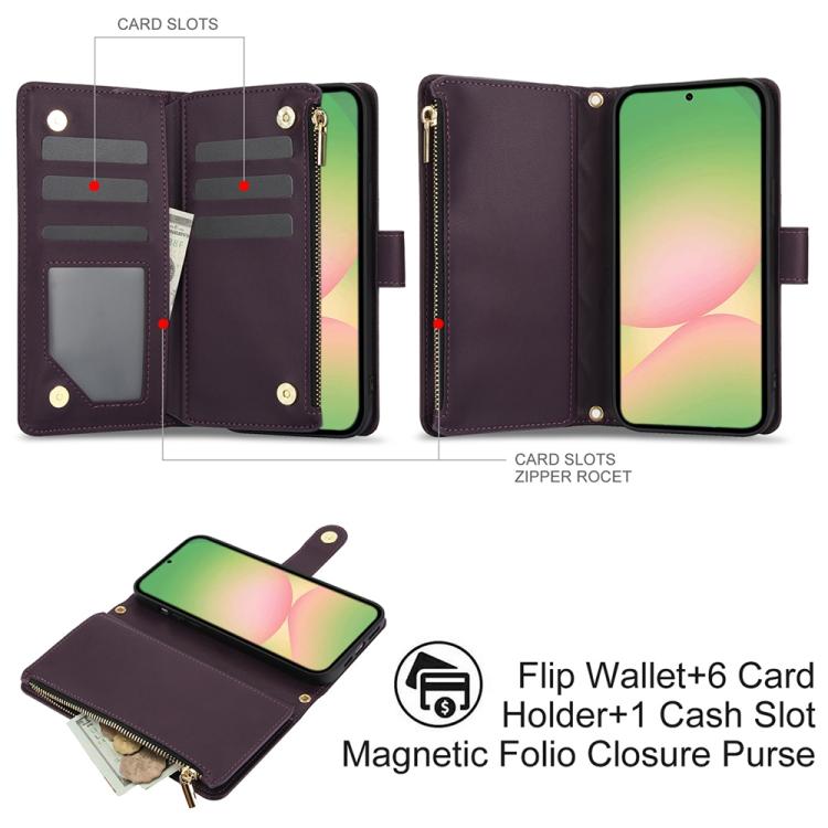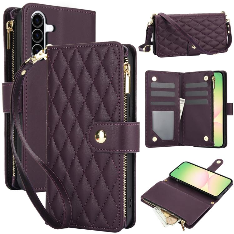 For Samsung Galaxy A56 5G YM016 Rhombic Zipper Card Wallet Leather Phone Case with Lanyard(Dark Purple)