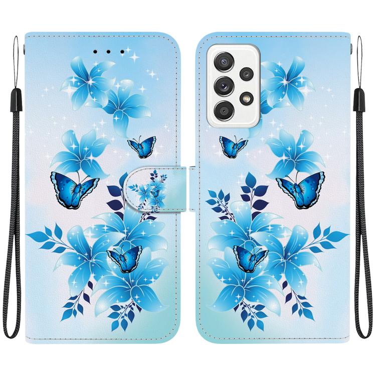 For Samsung Galaxy A73 5G Crystal Texture Colored Drawing Leather Phone Case(Blue Butterflies)