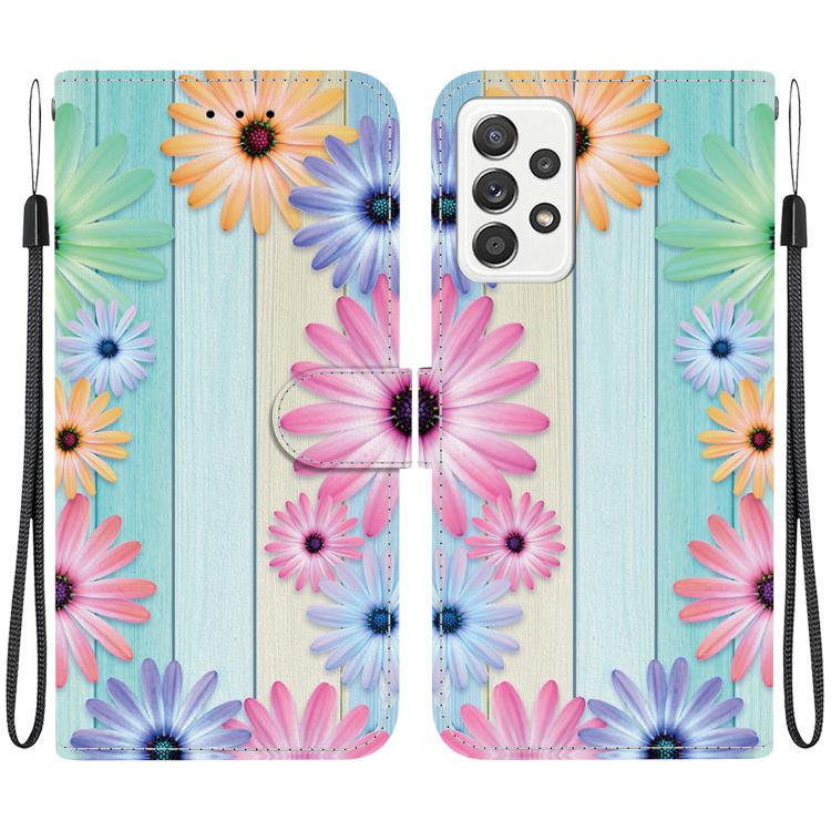 For Samsung Galaxy A73 5G Crystal Texture Colored Drawing Leather Phone Case(Sunflowers)