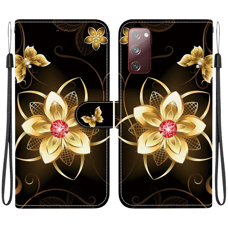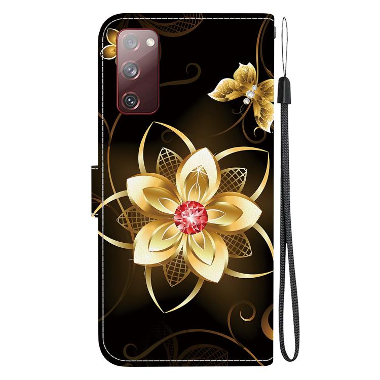 For Samsung Galaxy S20 FE Crystal Texture Colored Drawing Leather Phone Case(Gold Flower)