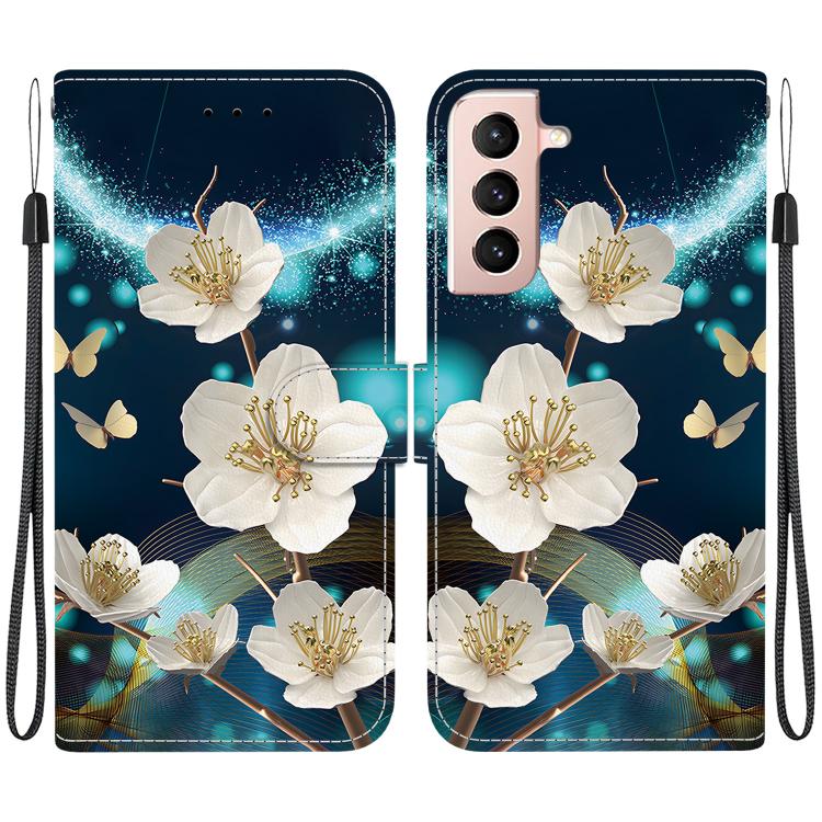 For Samsung Galaxy S21 5G Crystal Texture Colored Drawing Leather Phone Case(Magnolia)