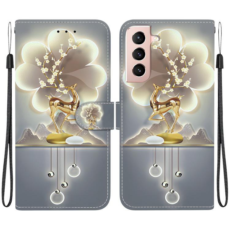 For Samsung Galaxy S21 5G Crystal Texture Colored Drawing Leather Phone Case(Sika Deer)