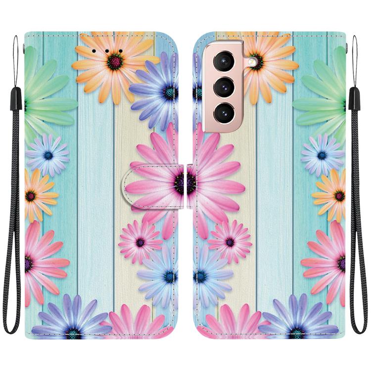 For Samsung Galaxy S21 5G Crystal Texture Colored Drawing Leather Phone Case(Sunflowers)