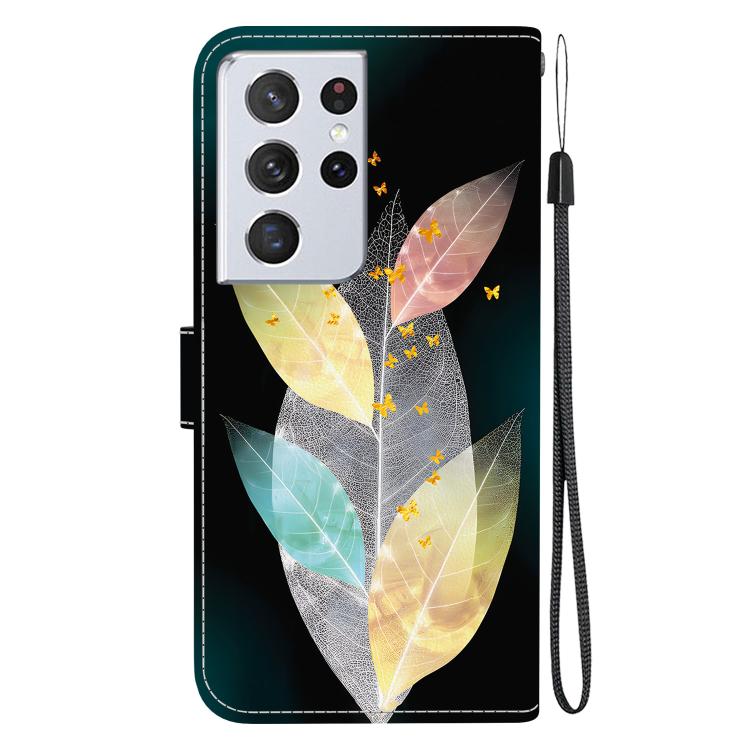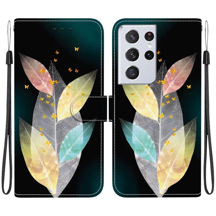For Samsung Galaxy S21 Ultra 5G Crystal Texture Colored Drawing Leather Phone Case(Colored Leaves)