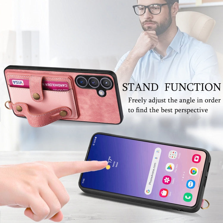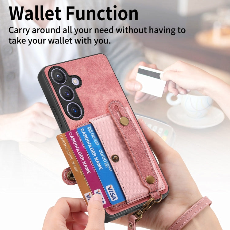 For Samsung Galaxy S24 5G Retro Cross Wristband Wallet Leather Back Phone Case(Pink)