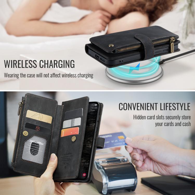 For Samsung Galaxy S25 5G CaseMe C30 Card Slots Zipper Wallet Leather Phone Case(Black)