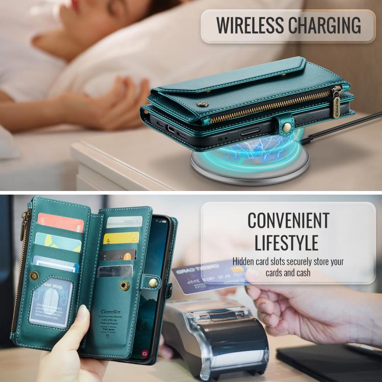 For Samsung Galaxy S25+ 5G CaseMe C36 Card Slots Zipper Wallet RFID Anti-theft Leather Phone Case(Blue)