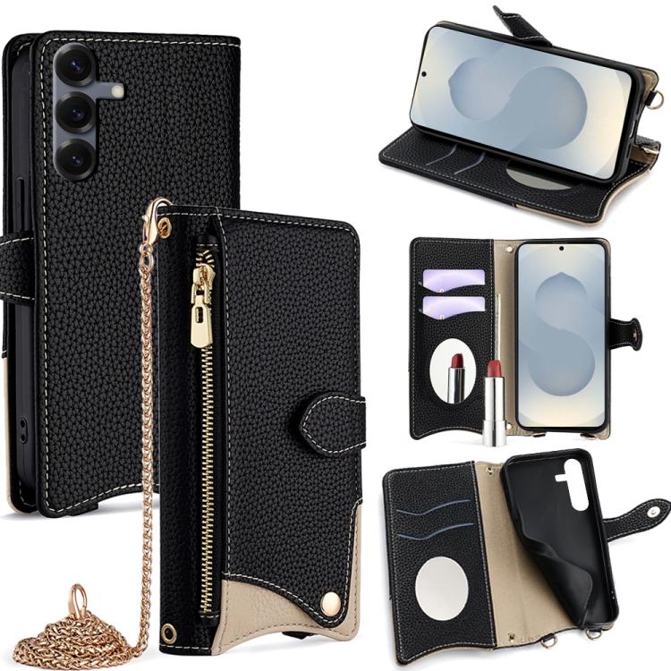 For Samsung Galaxy S25 5G Crossbody Chain Fishtail Litchi Leather Phone Case(Black)