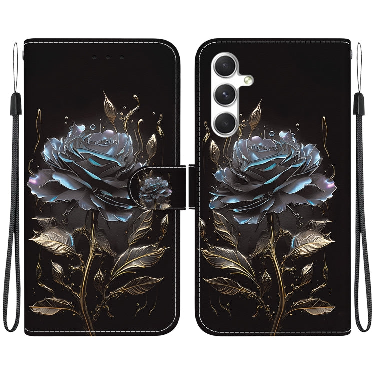 For Samsung Galaxy S25+ 5G Crystal Texture Colored Drawing Leather Phone Case(Black Rose)