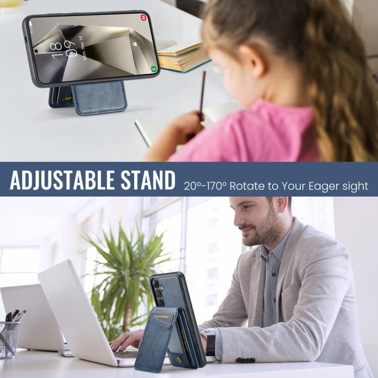 For Samsung Galaxy S25+ 5G Fierre Shann Cowhide Vertical Flip Magnetic Card Holder Phone Case(Blue)