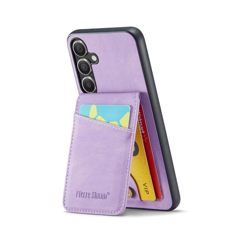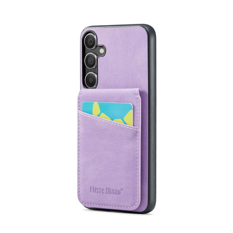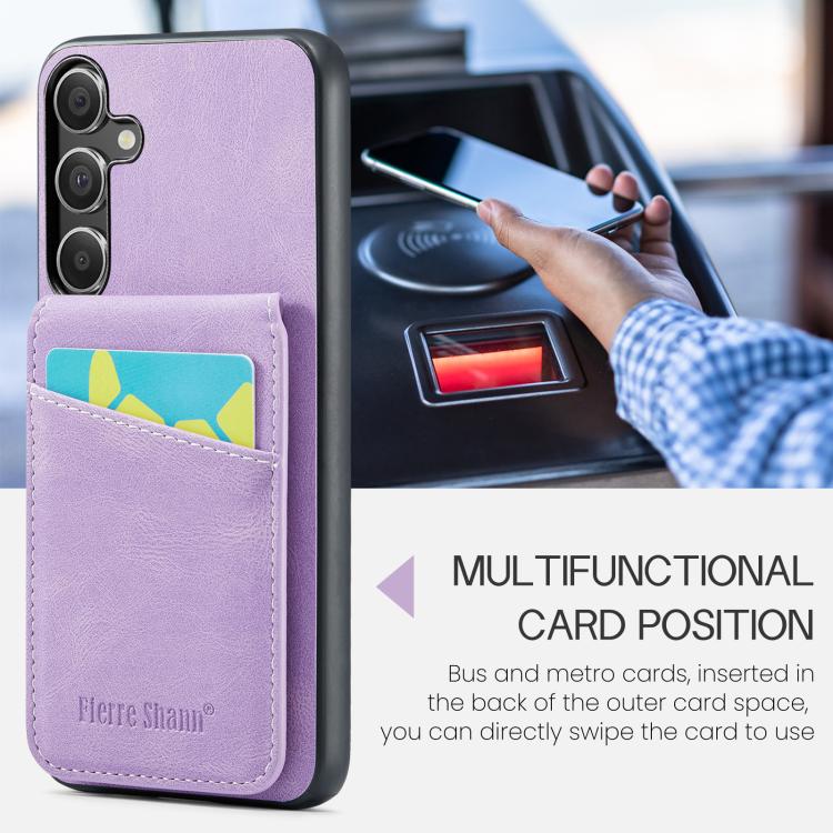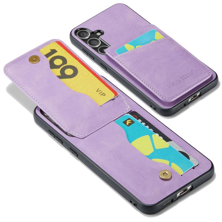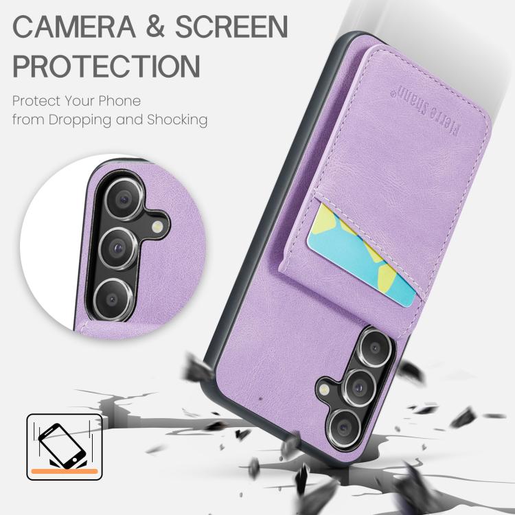 For Samsung Galaxy S25+ 5G Fierre Shann FS-023 Crazy Horse Card Holder Back Cover PU Phone Case(Purple)