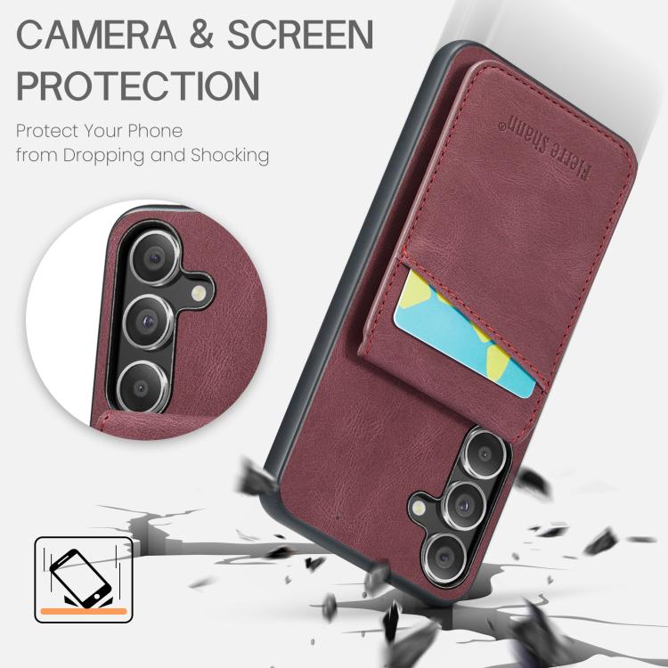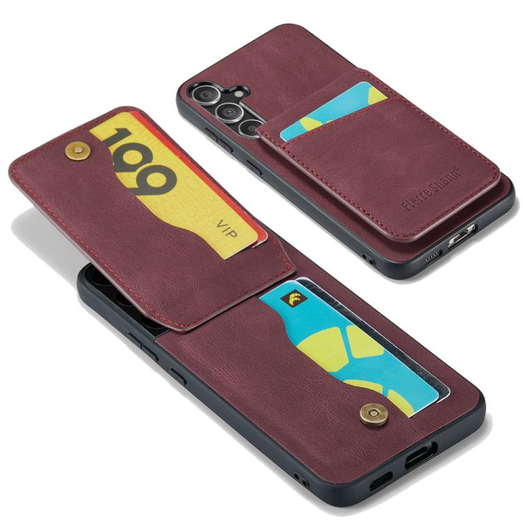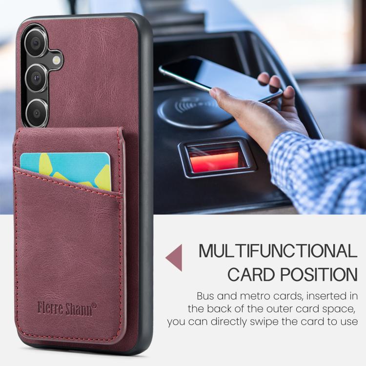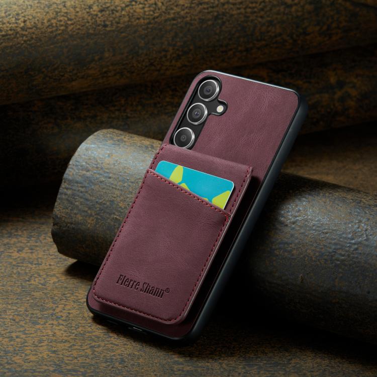 For Samsung Galaxy S25+ 5G Fierre Shann FS-023 Crazy Horse Card Holder Back Cover PU Phone Case(Wine Red)