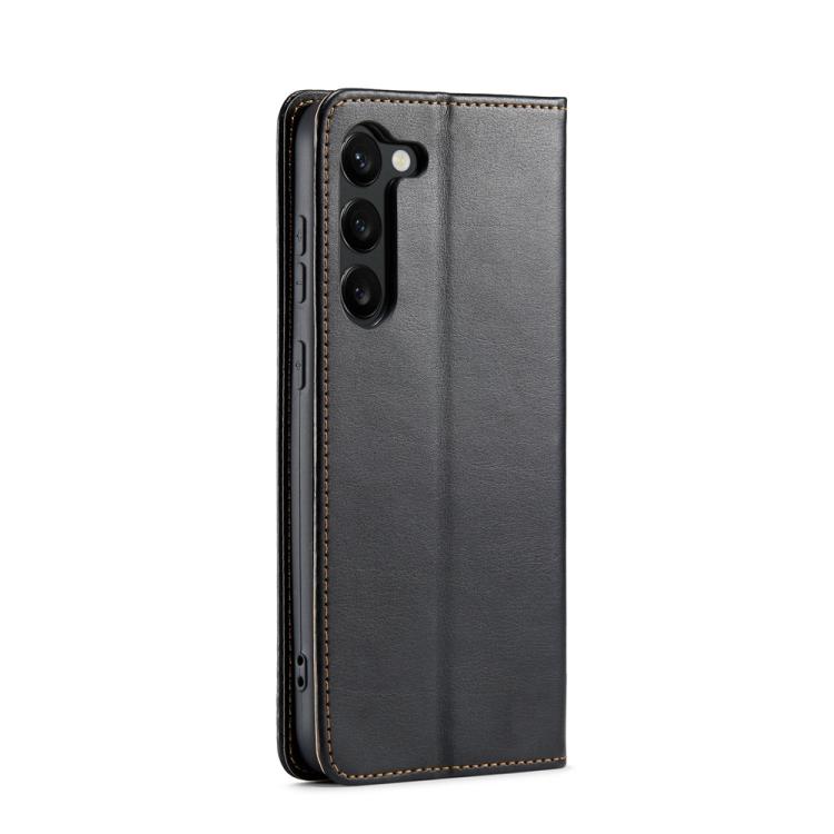 For Samsung Galaxy S25+ 5G Fierre Shann PU Genuine Leather Texture Phone Case(Black)