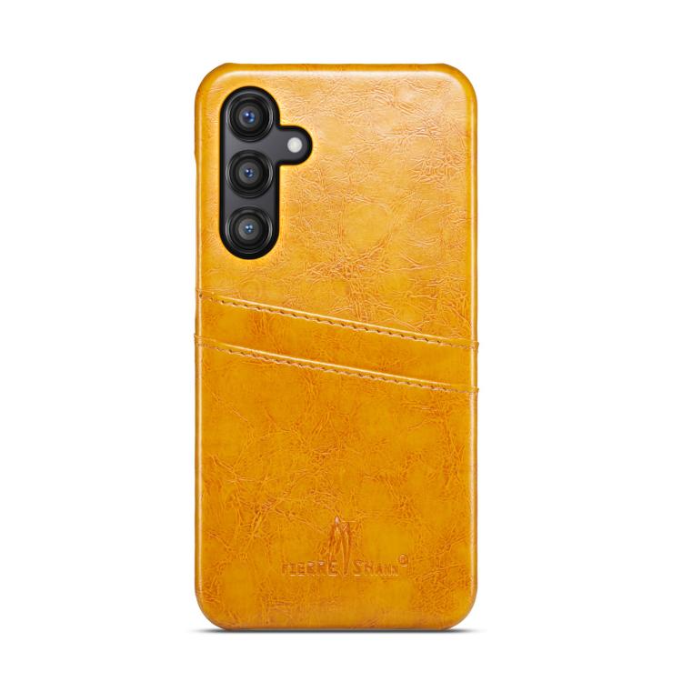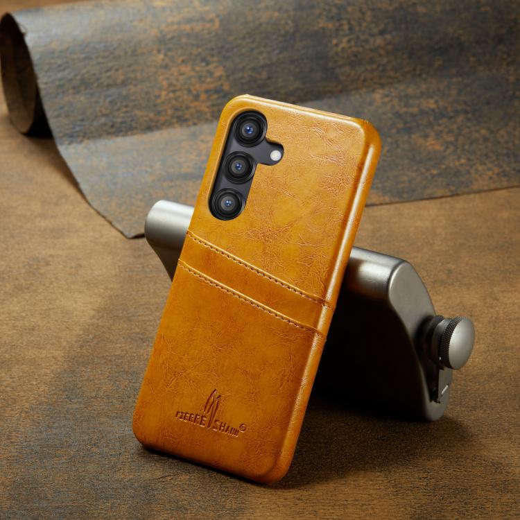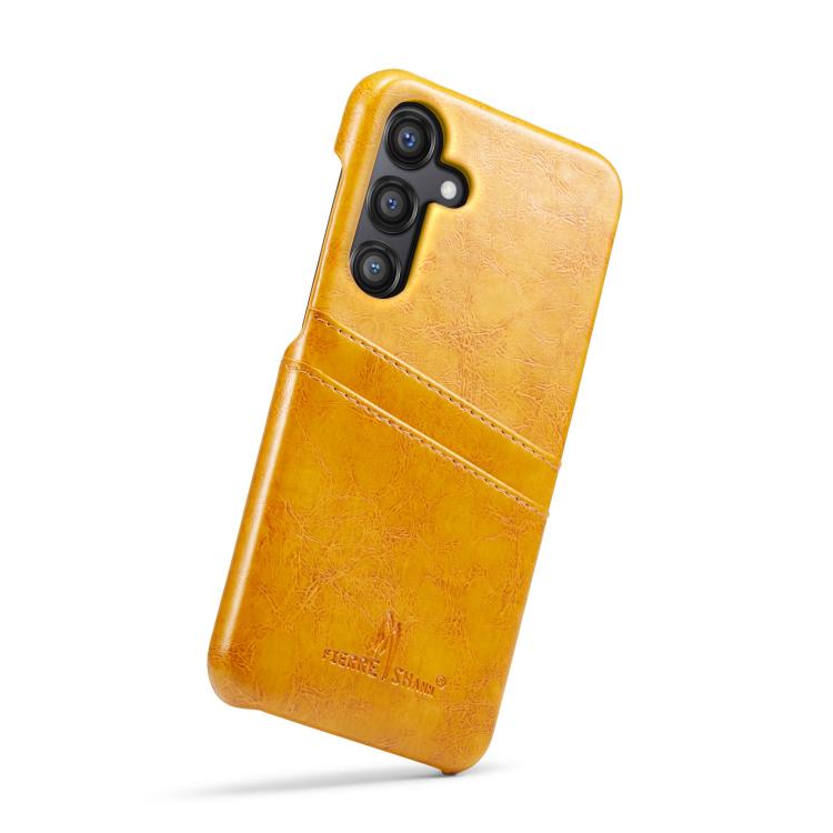For Samsung Galaxy S25+ 5G Fierre Shann Retro Oil Wax Texture Card Slots PU Leather Phone Case(Yellow)