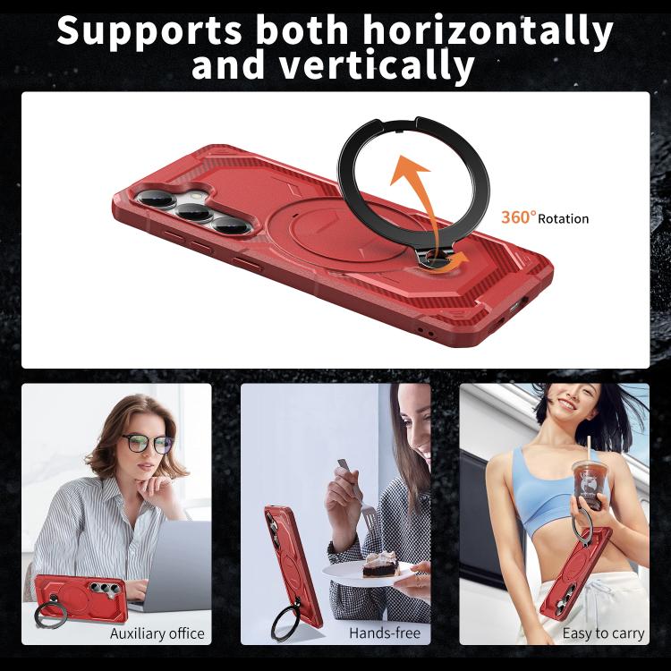 For Samsung Galaxy S25 5G Frosted MagSafe Holder Phone Case(Red)