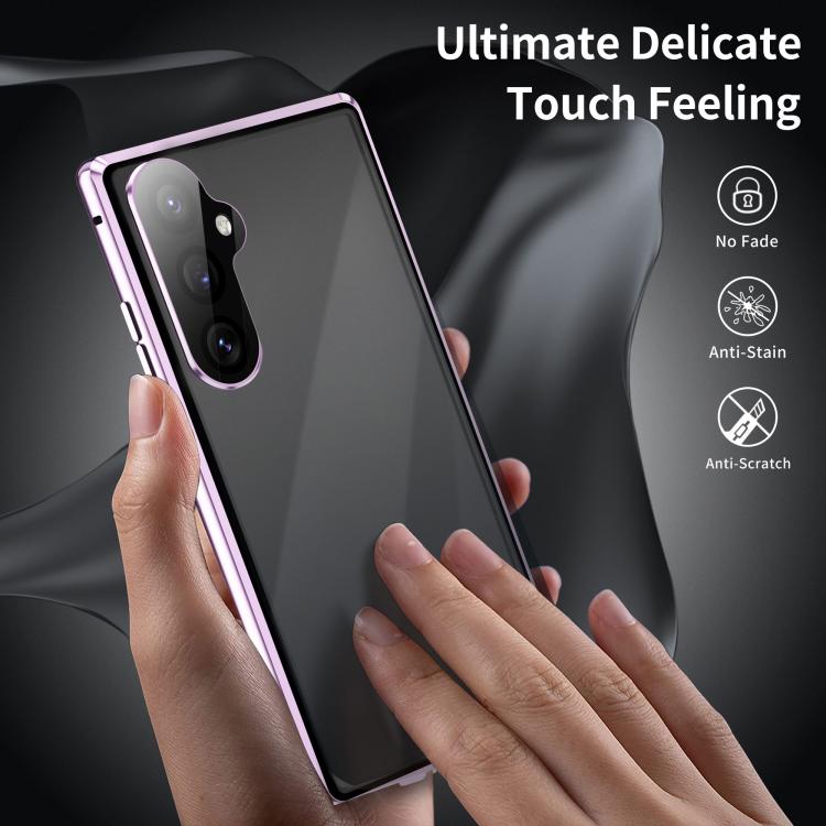 For Samsung Galaxy S25 5G HD Full Cover Magnetic Metal Tempered Glass Phone Case(Gold)